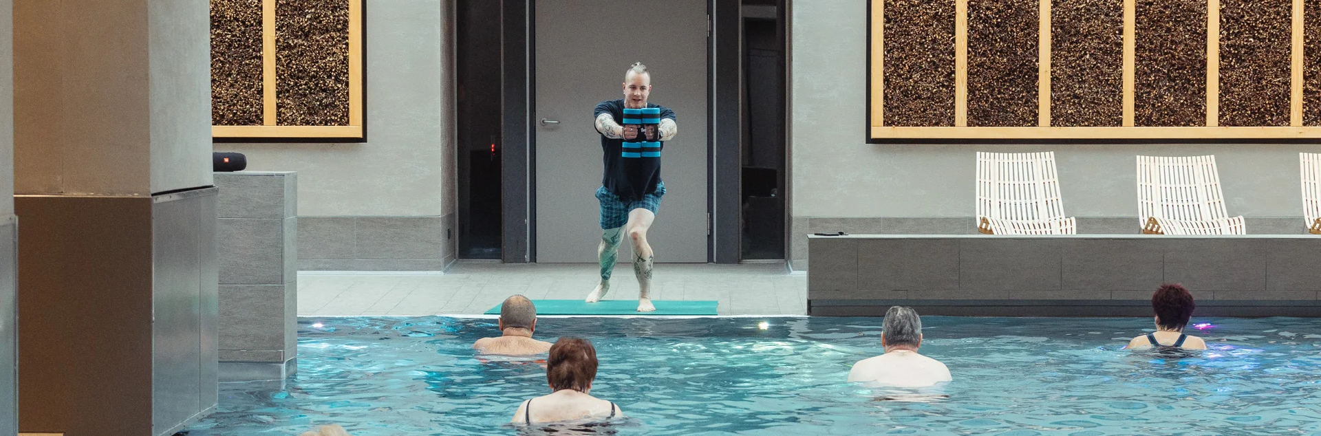 Aquafit ist Kraft- und Ausdauertraining mit viel Spaß im Wasser unter Einsatz verschiedener Trainingsgeräte wie Wassernudeln oder Hanteln. Die Bewegung im Wasser entlastet die Gelenke.